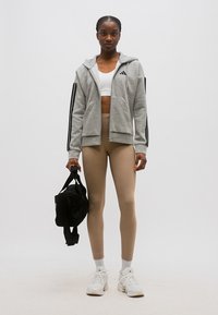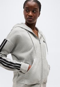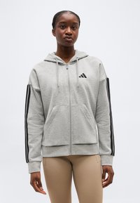 ESSENTIALS 3 STRIPES FULL ZIP HOODIE - Adīta jaka - medium grey heather/black