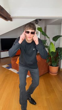 Saulesbrilles ar taisnstūrveida pelēkiem stikliem, plāniem melniem rāmjiem un sudraba akcentiem. Raksturo minimālistisks dizains un eleganta, moderna forma.