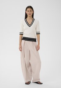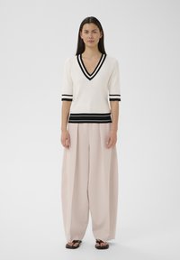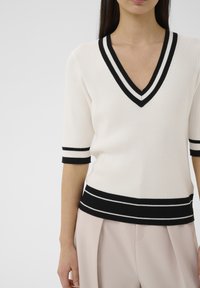 LEENAHIW VNECK - Apdrukāts T-krekls - vanilla black stripe