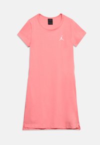 Melnas kokvilnas T-krekla kleita ar īsām piedurknēm un kabatu. Krūšu rajonā ir balts Jordan logotips, un to papildina sarkana cepure bļodiņveidā.