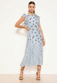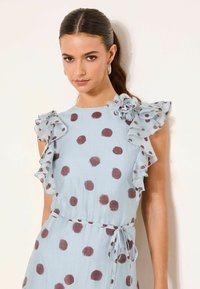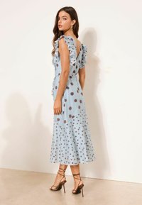 REGULAR FIT - POLKA DOT RUFFLE SHOULDER TIE WAIST MIDAXI - Dienas kleita - light blue