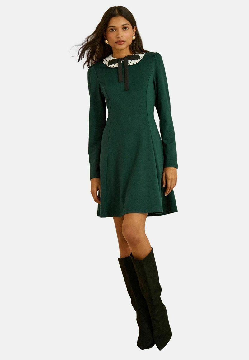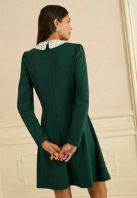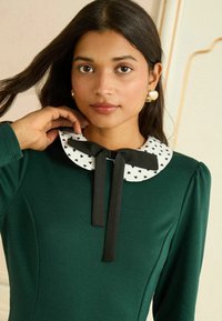 REGULAR FIT - LONG SLEEVE BOW COLLAR MINI - Dienas kleita - green white ecru spot