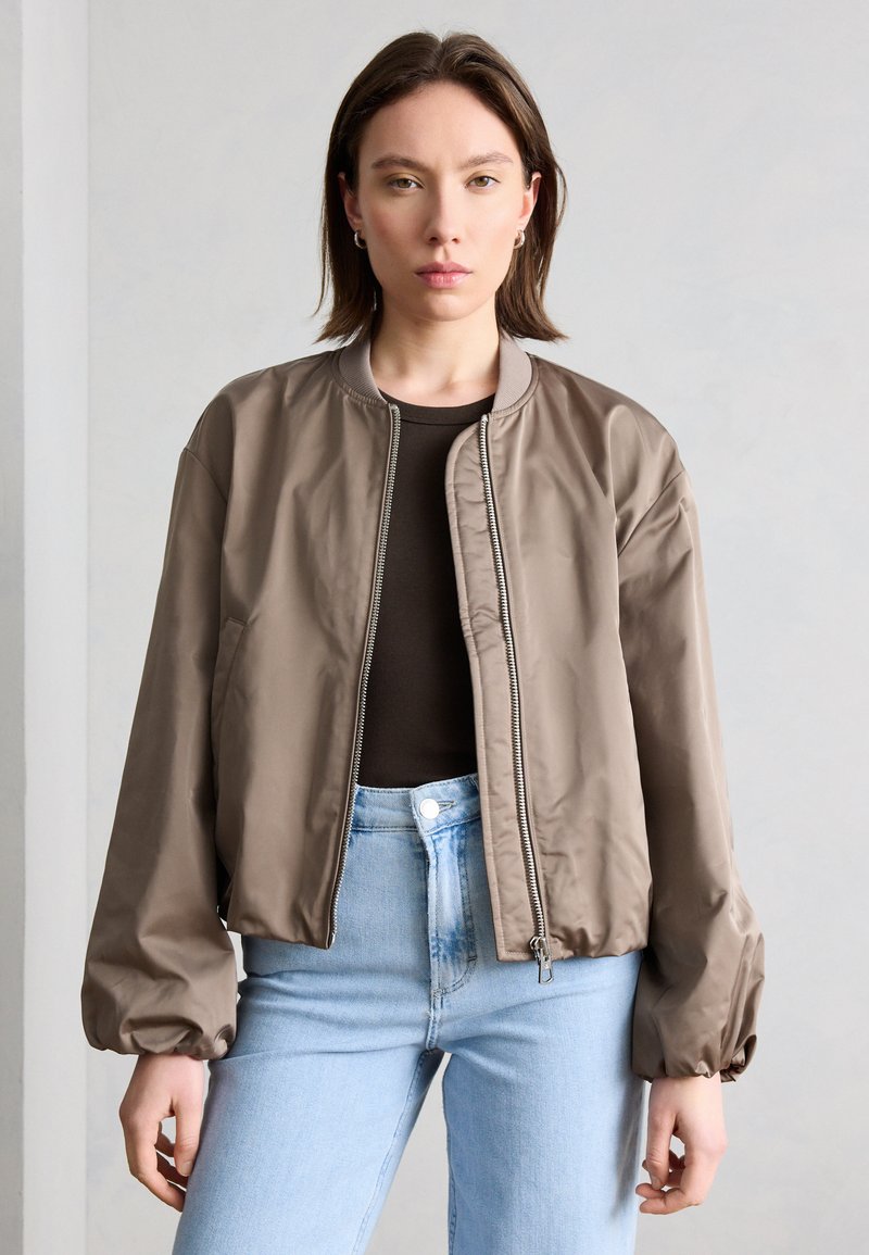 BLOUSON COLLAR WELT POCKETS DRAWSTRING AT BODY AND SLEEVE HEM - Bomber tipa jaka - chalky brown