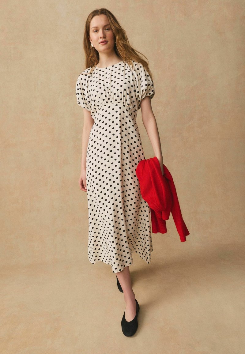 REGULAR FIT - PUFF SLEEVE - Maksi garuma kleita - ecru black polka dot