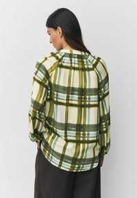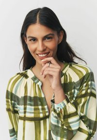 Regular Fit - Long Sleeve V-Neck - Blūze - green ecru check