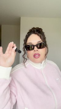 • Gaiši rozā rāvējslēdzēja jaka ar ribotu faktūru, baltām detaļām un sānu kabatām. Valkāta kopā ar melniem saulesbrillēm un lokveida auskariem.