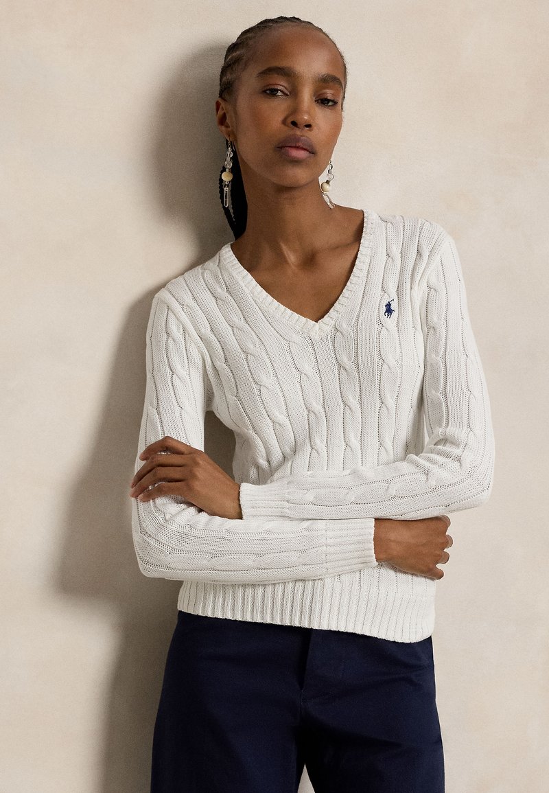 CABLE-KNIT COTTON V-NECK SWEATER - Džemperis - white