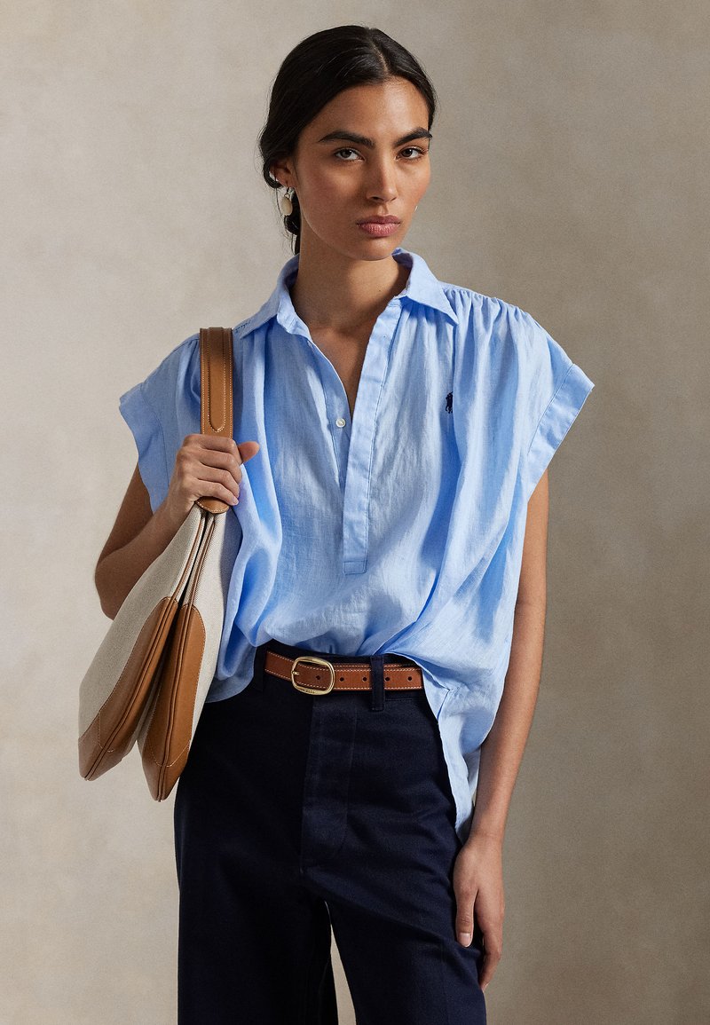 LINEN POPOVER SHIRT - Blūze - baby blue