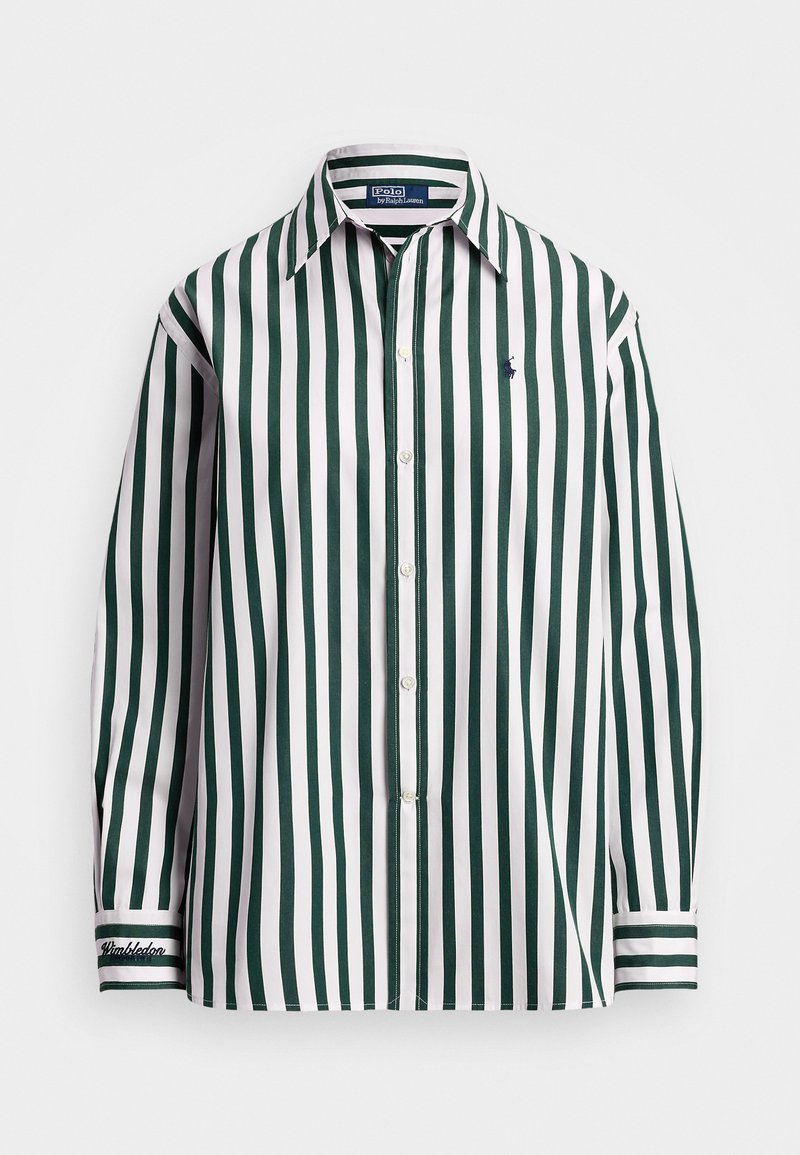 WIMBLEDON OVERSIZE FIT STRIPED COTTON SHIRT - Pogājama blūze - moss agate/ceramic white