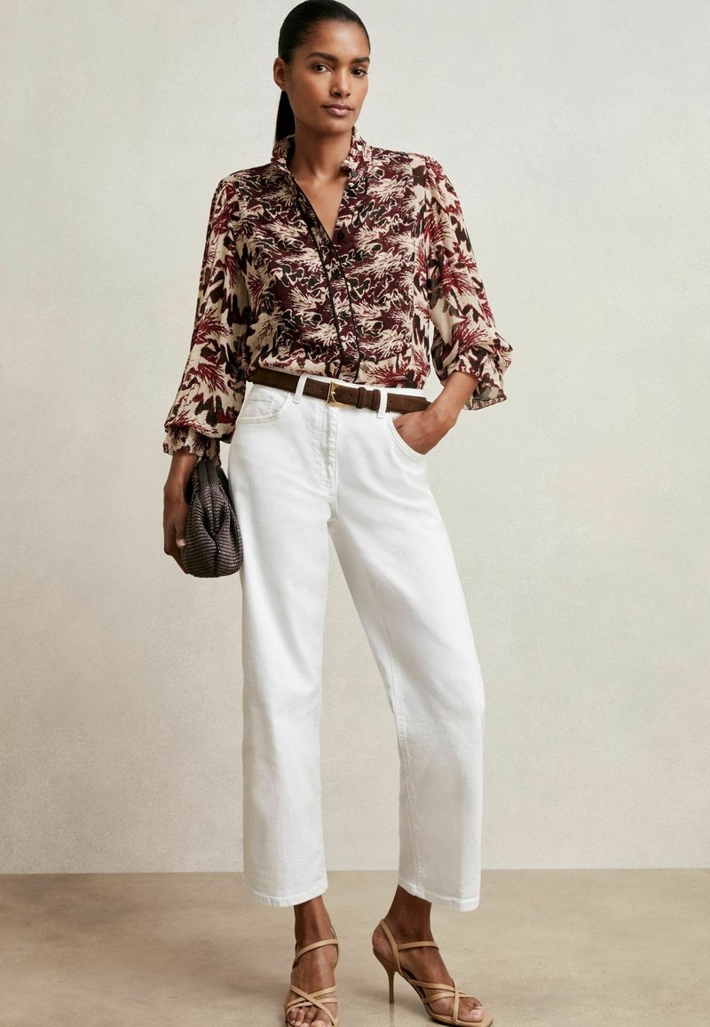 REGULAR FIT - JULES ABSTRACT-PRINT RUFFLE-NECK - Pogājama blūze - burgundy cream