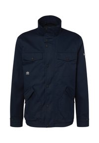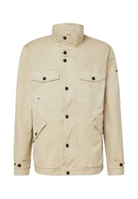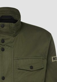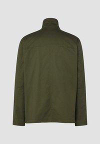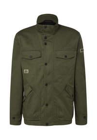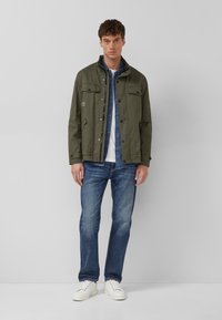 Jauns vīrietis ar īsiem brūniem matiem, ģērbies zaļā slāņotā jaku, zilā džinsa krekliņā, baltā T-krekliņā un zilās džinsās, stāv ar rokām kabatās.