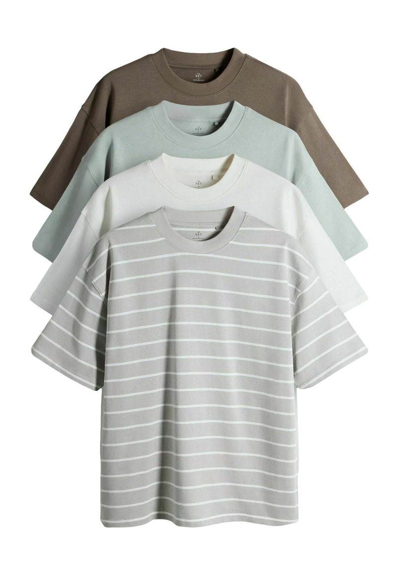 4 PACK OVERSIZED HEAVY CREW NECK - Apdrukāts T-krekls - aqua cream