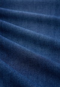 Tumši zili džinsu bikses ar taisnu kāju griezumu, kurām ir divas priekšējās kabatas, klasisks pogu un rāvējslēdzēja aizdare, kā arī neliela izbalēšana.