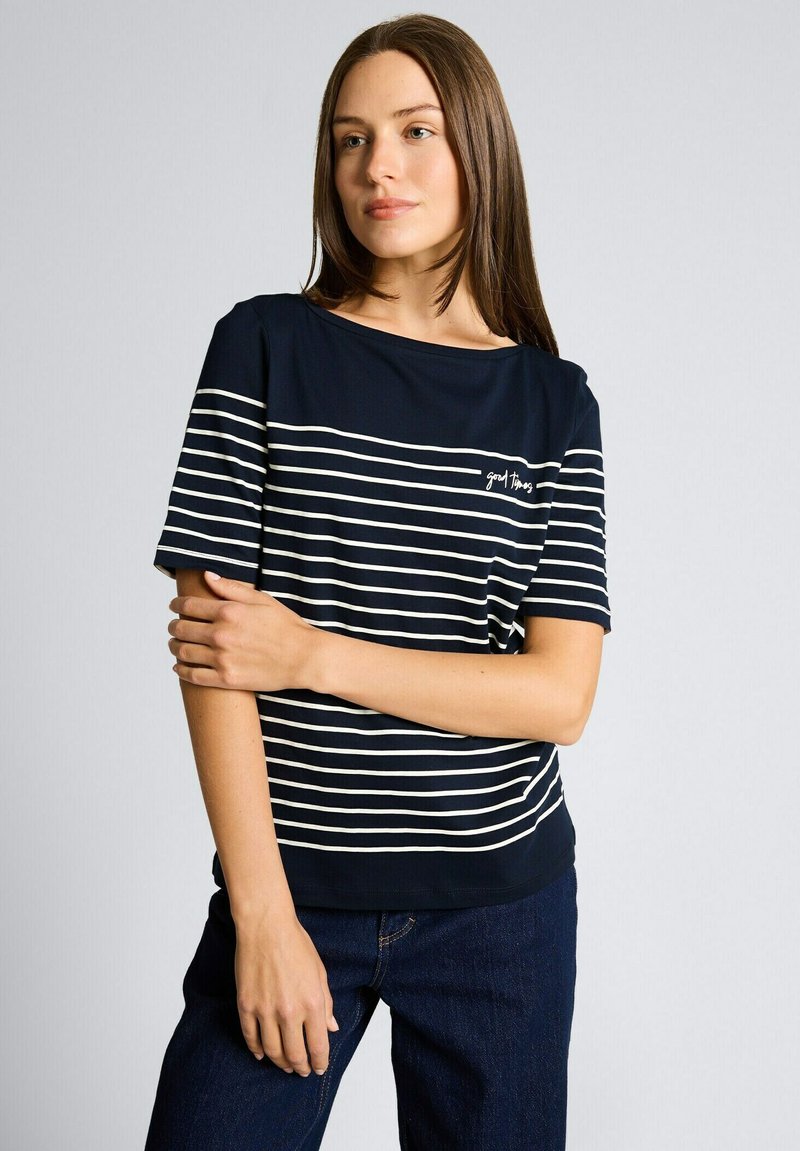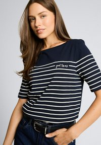 PLACED STRIPE BOAT NECK - Apdrukāts T-krekls - sky captain blue