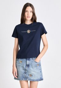 CREST LINEAR TEE - Apdrukāts T-krekls - dark night navy