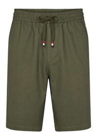 Beidzieto kokvilnas šorti ar elastīgu jostu un auklu. Apvienoti ar melniem un sarkaniem čībiņām. Ietver sānu kabatas.